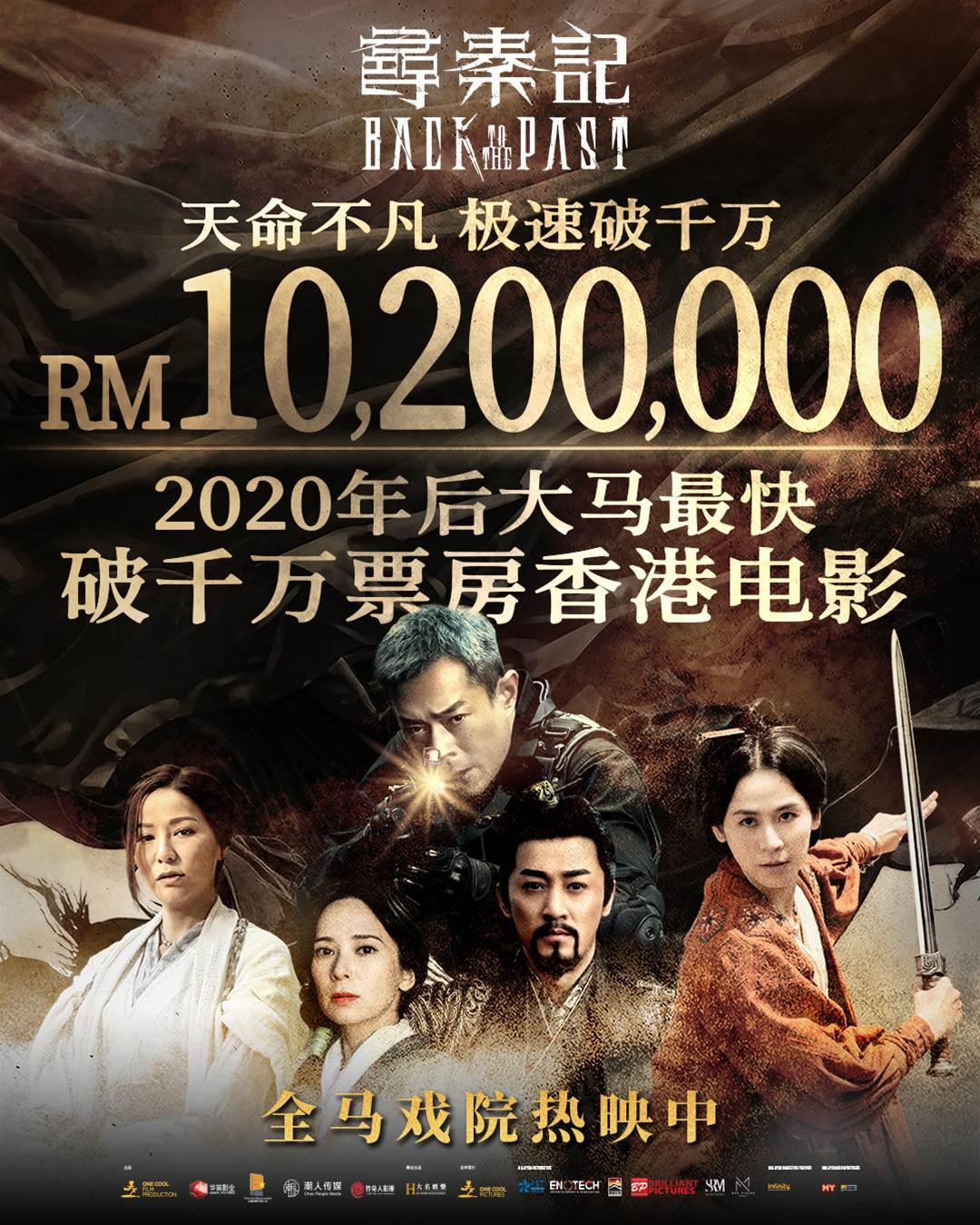 由古天乐担任总监制、邓维弼监制,吴炫辉与黎震龙联合执导,古天乐、林峯、宣萱、郭羡妮、滕丽名等原班人马重磅回归,电影版《寻秦记》 12月31日上映后创下香港史上最高开画票房港产片纪录,截至昨日,电影在大马累计票房突破1,020万令吉,主演团队将旋风来马庆功谢票!