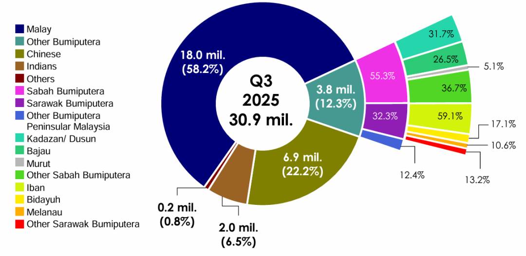 2025第三季度马来西亚公民人口结构大致如下: