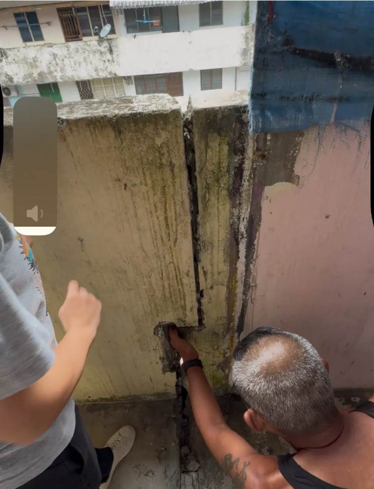 另一方面,组屋居民郑雄光(60岁,音译)受访时坦言,他与友人曾花费约300令吉购买水泥修补墙壁裂缝,但问题仍然反复。