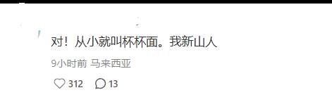 “对!从小就叫杯杯面,我新山人。”