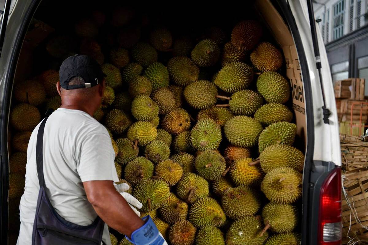 “目前正值高峰期,直到2月为止。我们每天接收约6至10辆罗厘的榴梿,数量多达约1万2000个甘榜榴梿。”