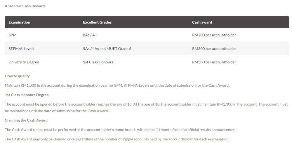 持有Maybank Yippie储蓄户口的学生注意,若在SPM考试中取得8A或以上佳绩,可申请银行提供的现金奖励。不过,这项奖励计划长期存在,却仍有不少用户并不知情。