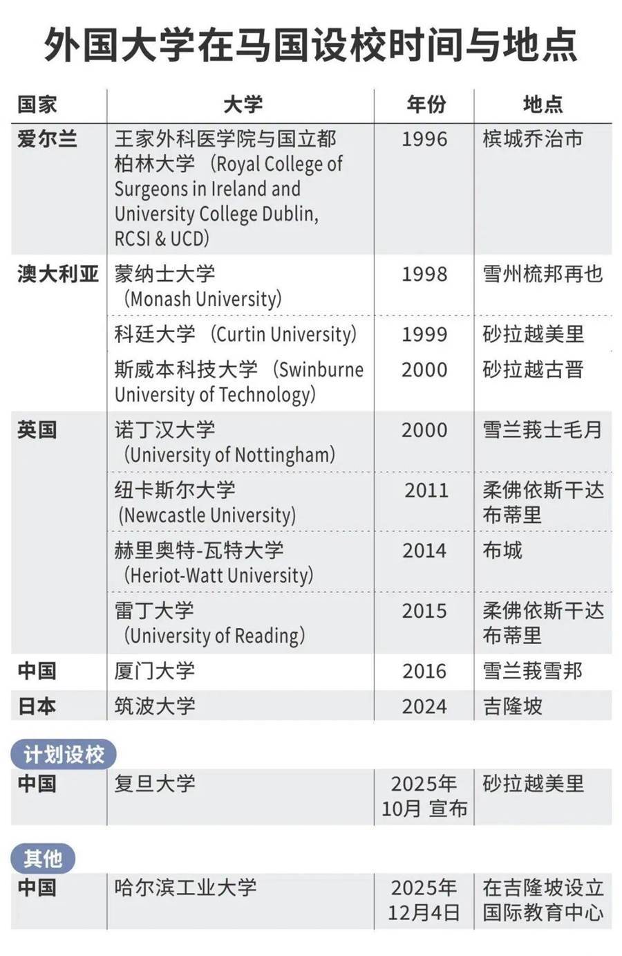 马国在1996年首次允许外国大学设分校,到现在已有11所外国大学分校,来自英国、澳大利亚、爱尔兰、中国和日本等地。其中,1998年在马国设分校的蒙纳士大学今年10月宣布投资6亿6000万美元(约8亿5000万新元),2032年之前在吉隆坡建设一座超级校园,预计到2040年可接收2万2000名学生。这些发展让马国逐渐成为亚洲最大的留学生接收国之一。