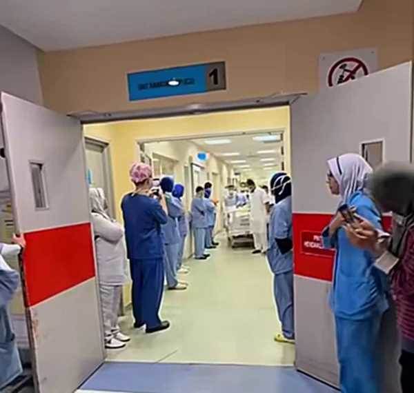 视频中显示,医务人员在病房外排队,向阿米鲁的遗体表示最后的敬意,以示表达最深的谢意。