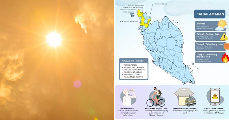 多喝水补充水分(每天饮用 8 杯水)减少在太阳高照的时段(11AM – 4PM)进行户外活动多穿宽松和浅色的衣服,帮助散热气最后,气象局也提醒民众随时关注该局在各平台发布的最新资讯。