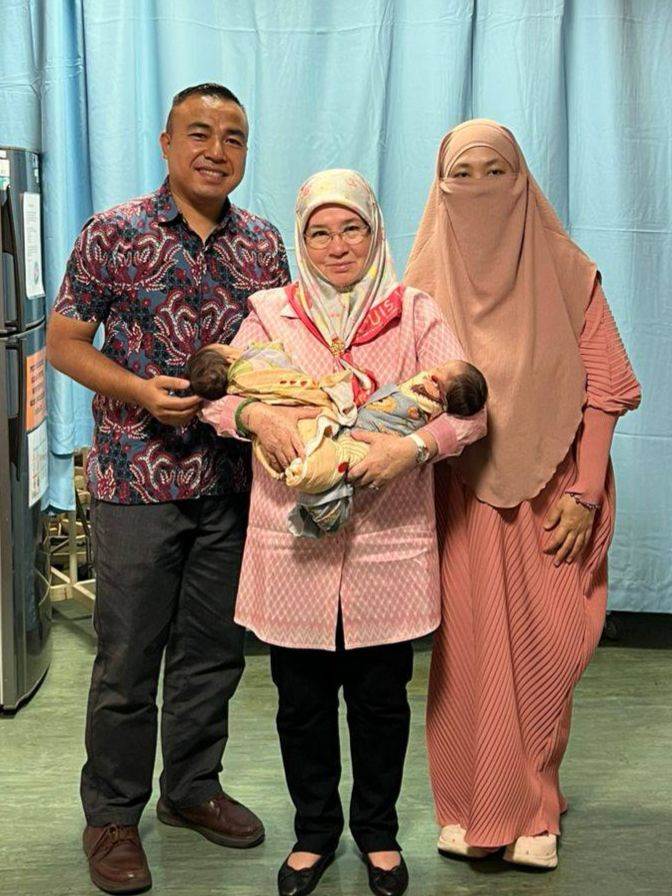 彭亨苏丹后东姑阿兹莎阿米娜在得知该对夫妻的遭遇后安排进行人工受孕,萨比娜在去年10月24日平安在甲州中央医院顺利诞下3胞胎。