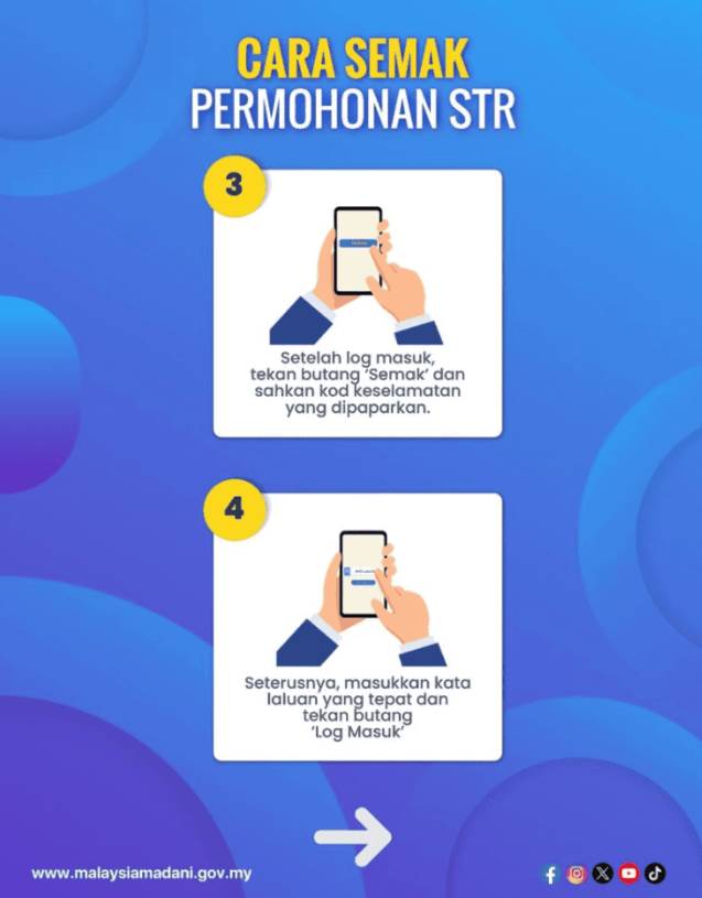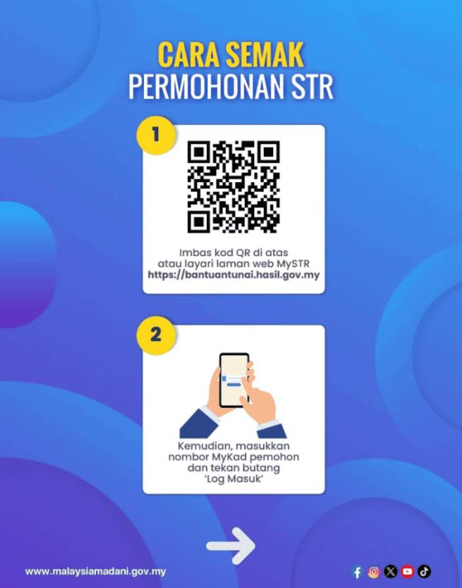 2026 年首阶段 STR 援助金,会在 1 月 20 日开始发放。符合资格的受惠者,获得 RM100 至 RM500 的援助。