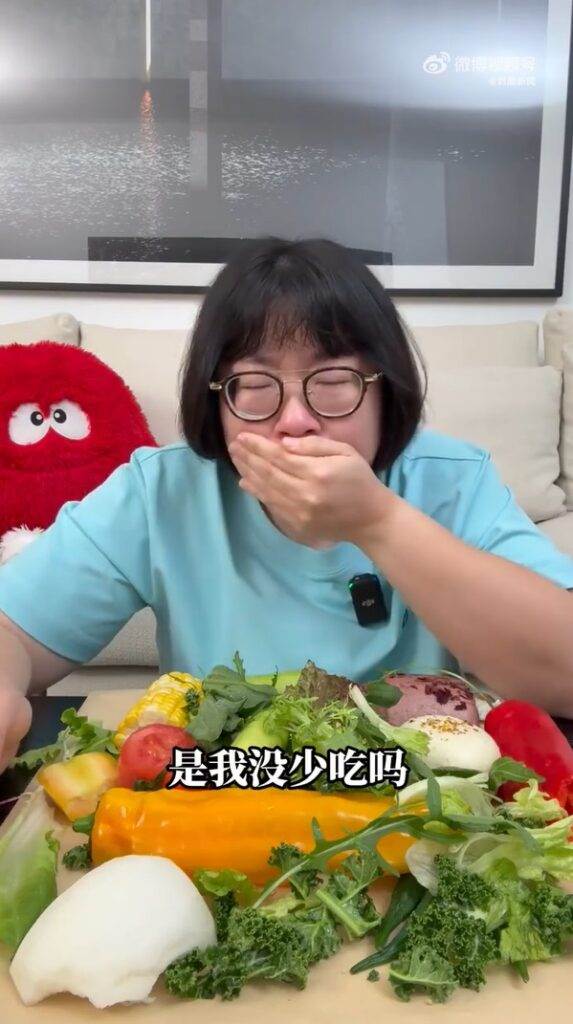 影片中,颜如晶默默流泪,委屈地问道:“是我没少吃吗?是它不肯掉啊”。