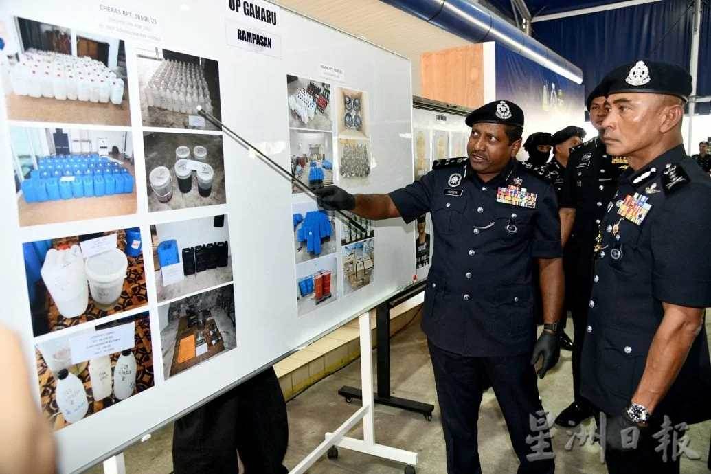 “警方在后续行动中突击位于加影工业区的两间厂房,再缉获部分炼毒设备、3 吨零 24 公斤粉状 K 他命、10 吨零 67 公斤液态 K 他命,与另 1400 包总重量达 1 吨 402 公斤,已完成包装的 K 他命粉。”