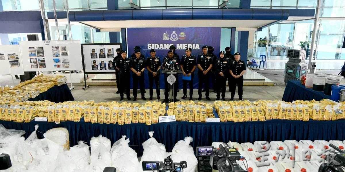 他说,警方本次缉获的毒品为 14 吨 493 公斤的 K 他命、4 吨零 41 公斤的可卡因与 3 公斤摇头丸,估计市值 15 亿 3000 万令吉,其中起获的可卡因无论是在生产规模及数量,都是大马史上迄今最大。