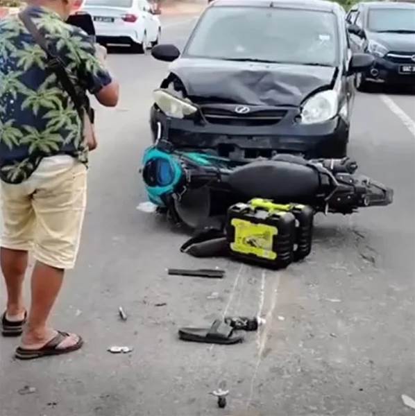 (斗亚兰6日讯)2名窃贼偷走五金店值钱财物后,骑摩哆甫到出口即被轿车撞飞,2人被迫弃摩哆逃离,惟他们的钱包及大马卡仍留在现场,恐插翅难飞!