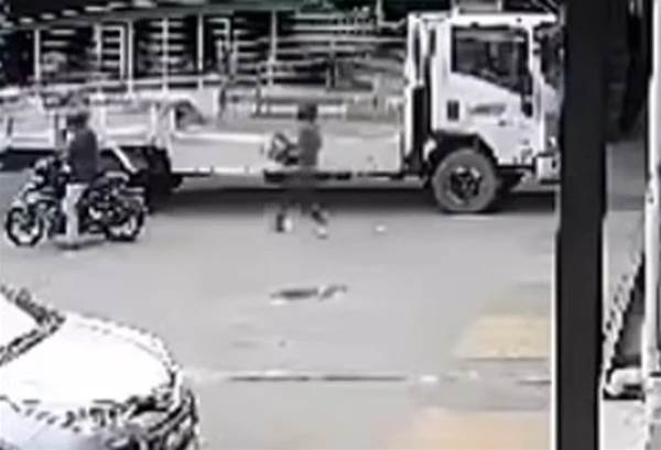 社交媒体流传一则闭路电视画面,显示一名男子骑着摩哆负责把风,另一名男子跑到五金店堆放商品的地方,偷走一样物品立即走到摩哆,正好店员撞见这一幕,想要立即追上去。