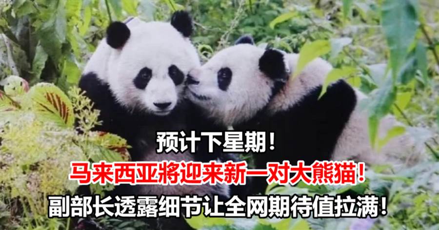 根据报道,天然资源与环境永续部副部长拿督斯里范屯长锡透露,马来西亚预计将在本月中旬迎来两只来自中国的大熊猫 (Chen Xing 晨星与 Xiao Yue 晓月), 为我国的大熊猫保育计划揭开新篇章。