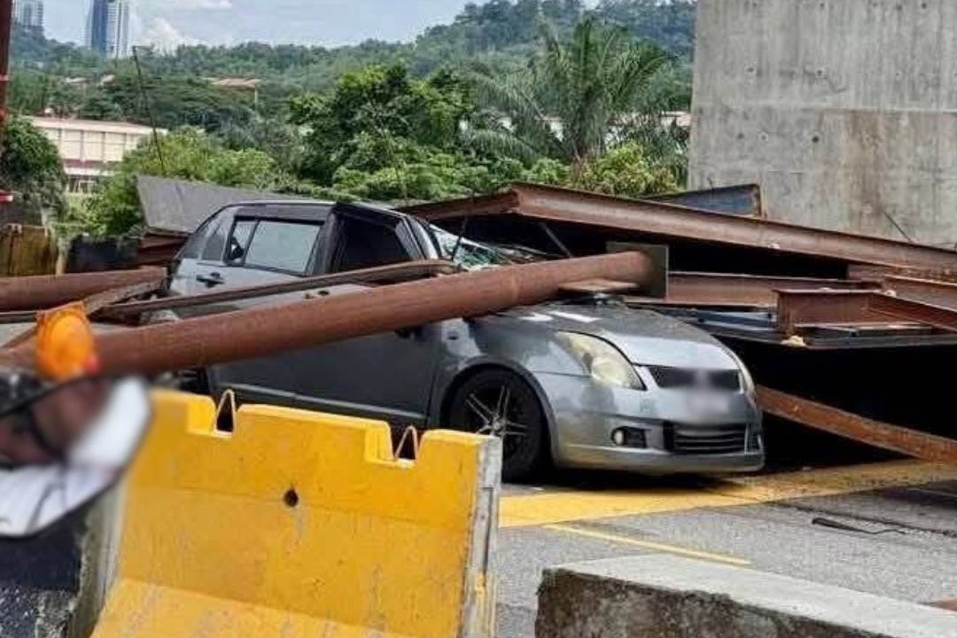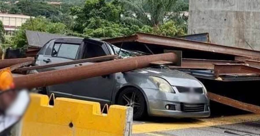 经了解,东海岸铁路计划 (ECRL) 施工现场钢架突然失衡倒下,不幸砸中途经的铃木 Swift 轿车。