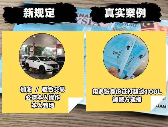 马来西亚政府为打击补贴油外流,明确要求:所有 RON95 加油、柜台交易,必须本人持 MyKad 到场操作,禁止代刷、代付、借卡。哪怕是夫妻共用车辆,也必须各自本人在场,不能由一方代刷另一方的身份证,更不能用多张身份证累计打油超过 100 升。