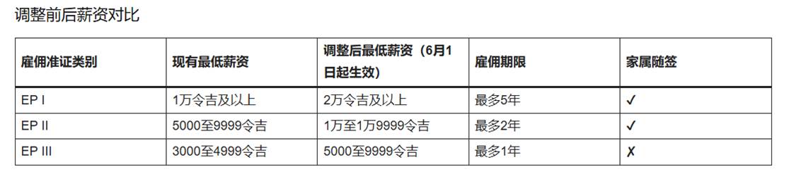 此项修订适用于所有新申请及续签的雇佣准证,将在2026年6月1日生效。