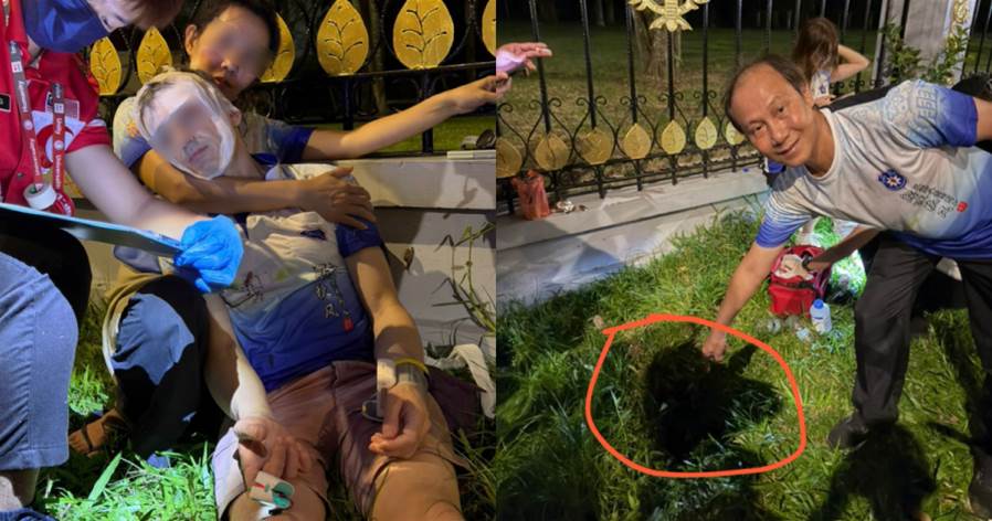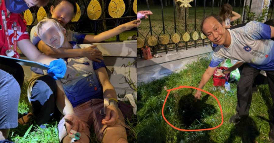 据悉,上述意外是今晚约9时许在新山联邦大厦附近路段发生,相信是草坪有个“隐形”路洞未有告示牌和物件遮挡,才会导致该名外籍男子踩空受伤。