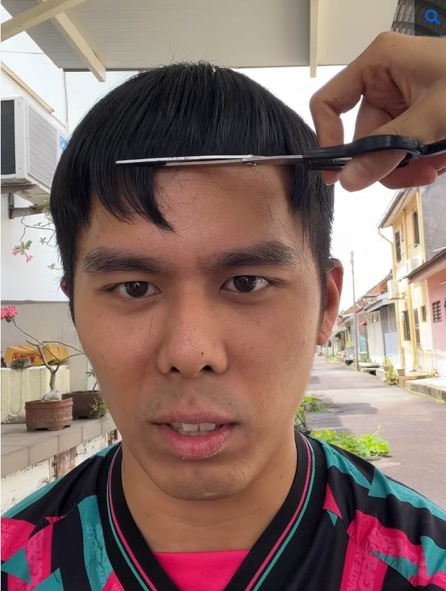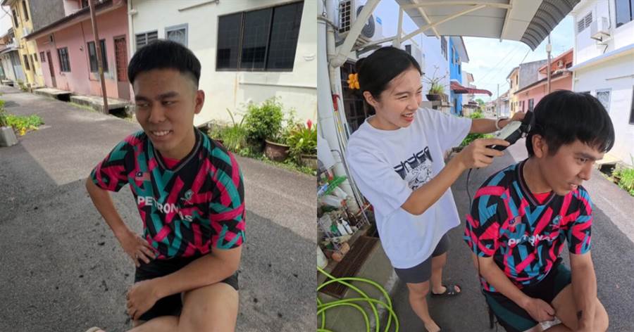 从 K佬释出的照片来看,可见K佬坐在房子的后巷,让女友 Michie 为自己剃头。