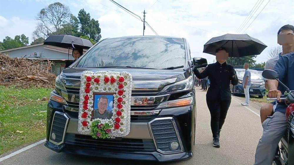 举殡仪式今早在死者武吉港脚的老家举行。现场聚集了来自政经文教界逾500名亲友,送殡车龙绵延逾200公尺。在法师引领下,死者兄弟亲友轮流扶灵抬棺,步行约2公里至路口,场面极度哀伤。