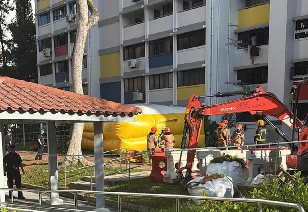 新加坡民防部队也出动,在楼下铺设安全气垫,以防嫌犯跳楼逃跑。同时,警察从楼上单位部署绳索,准备从窗口突入,前后包抄,瓮中捉鳖。