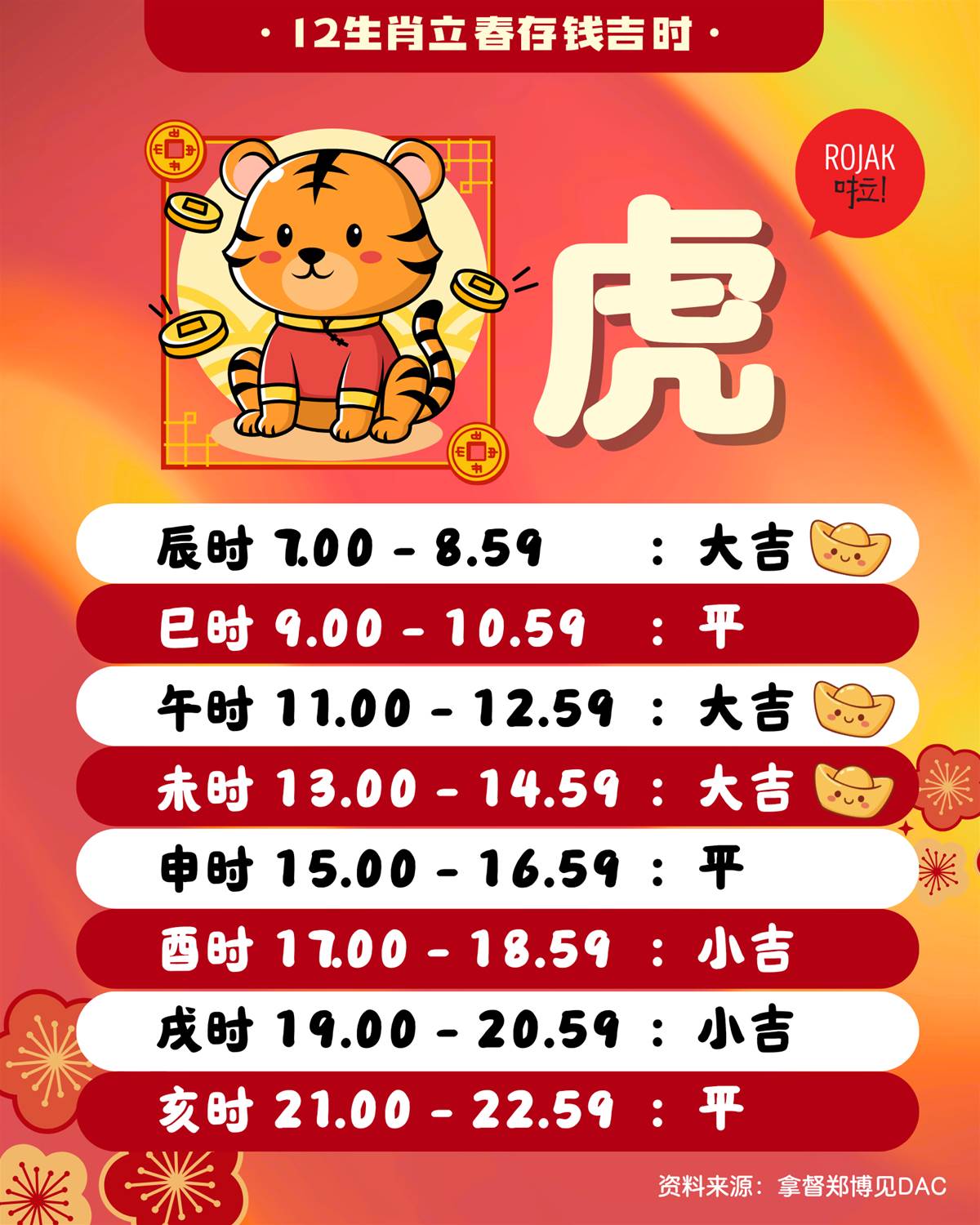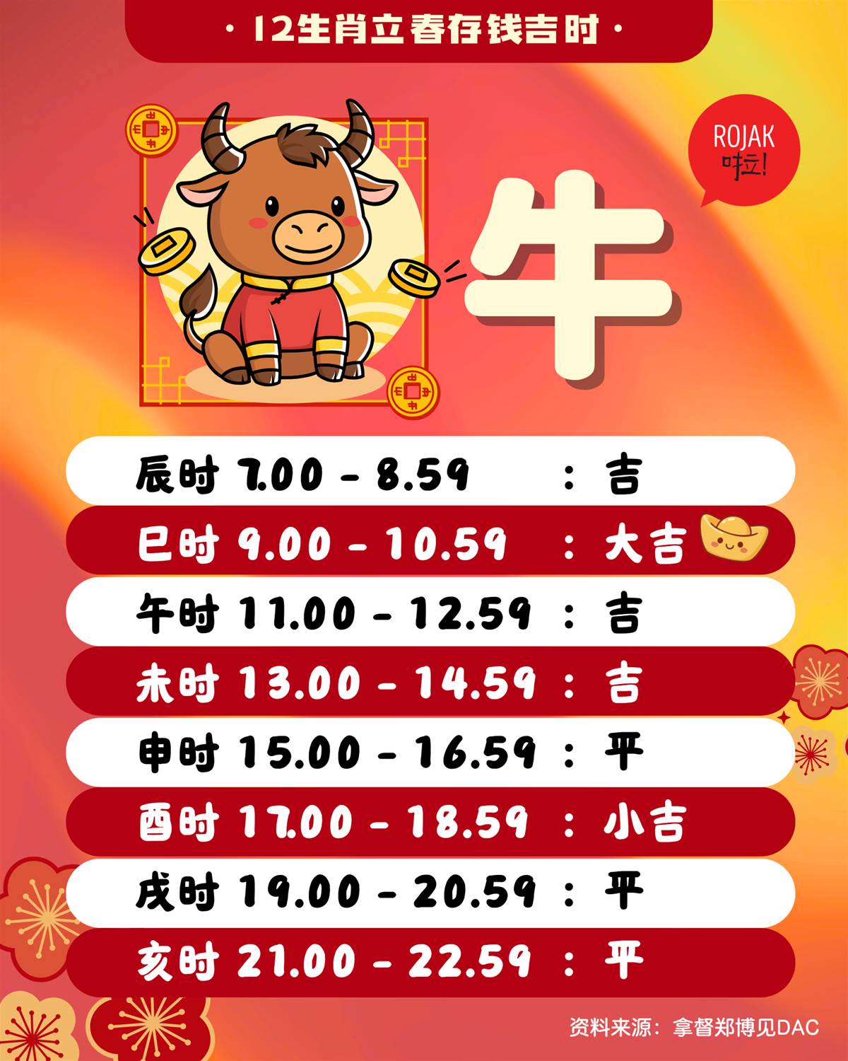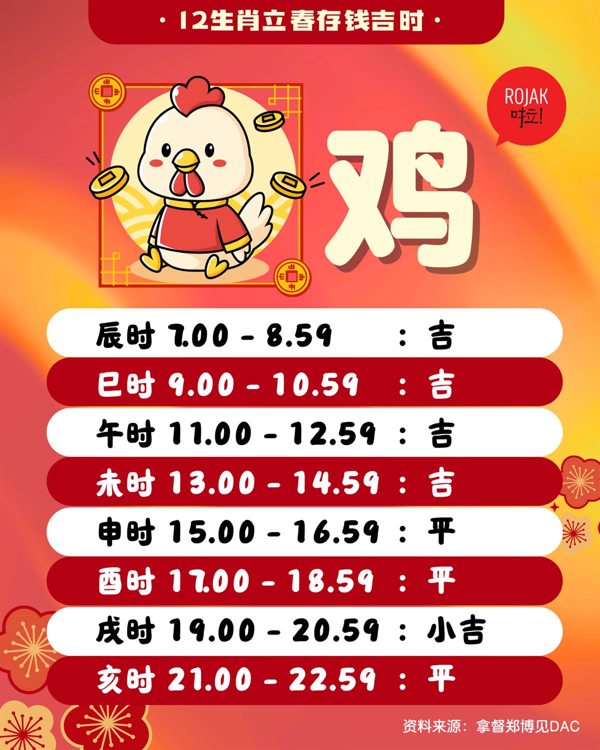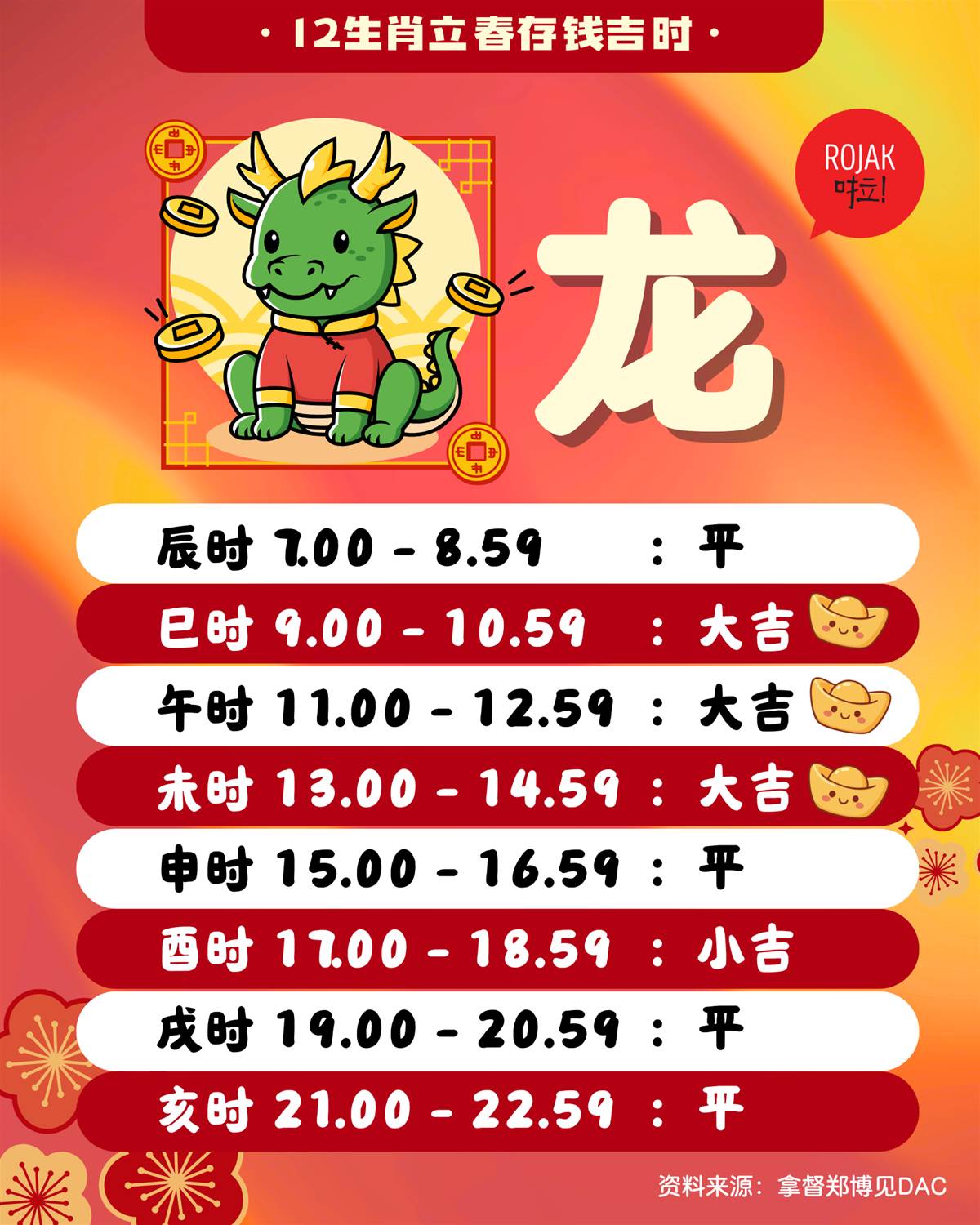 以下是拿督郑博见分享的 12 生肖立春存钱吉日: