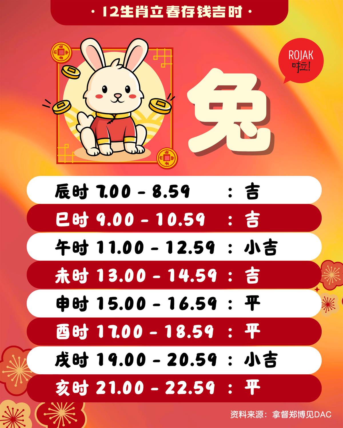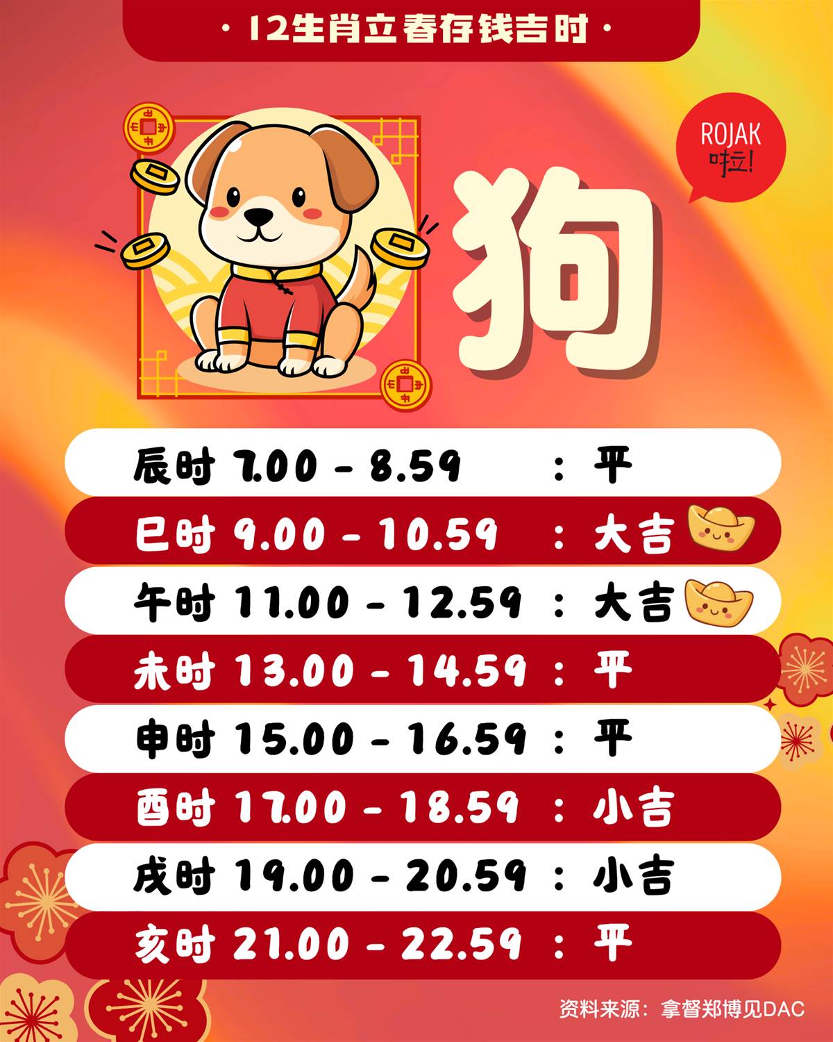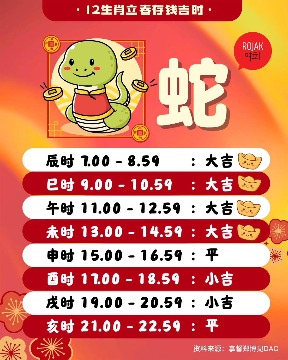 以下是拿督郑博见分享的 12 生肖立春存钱吉日: