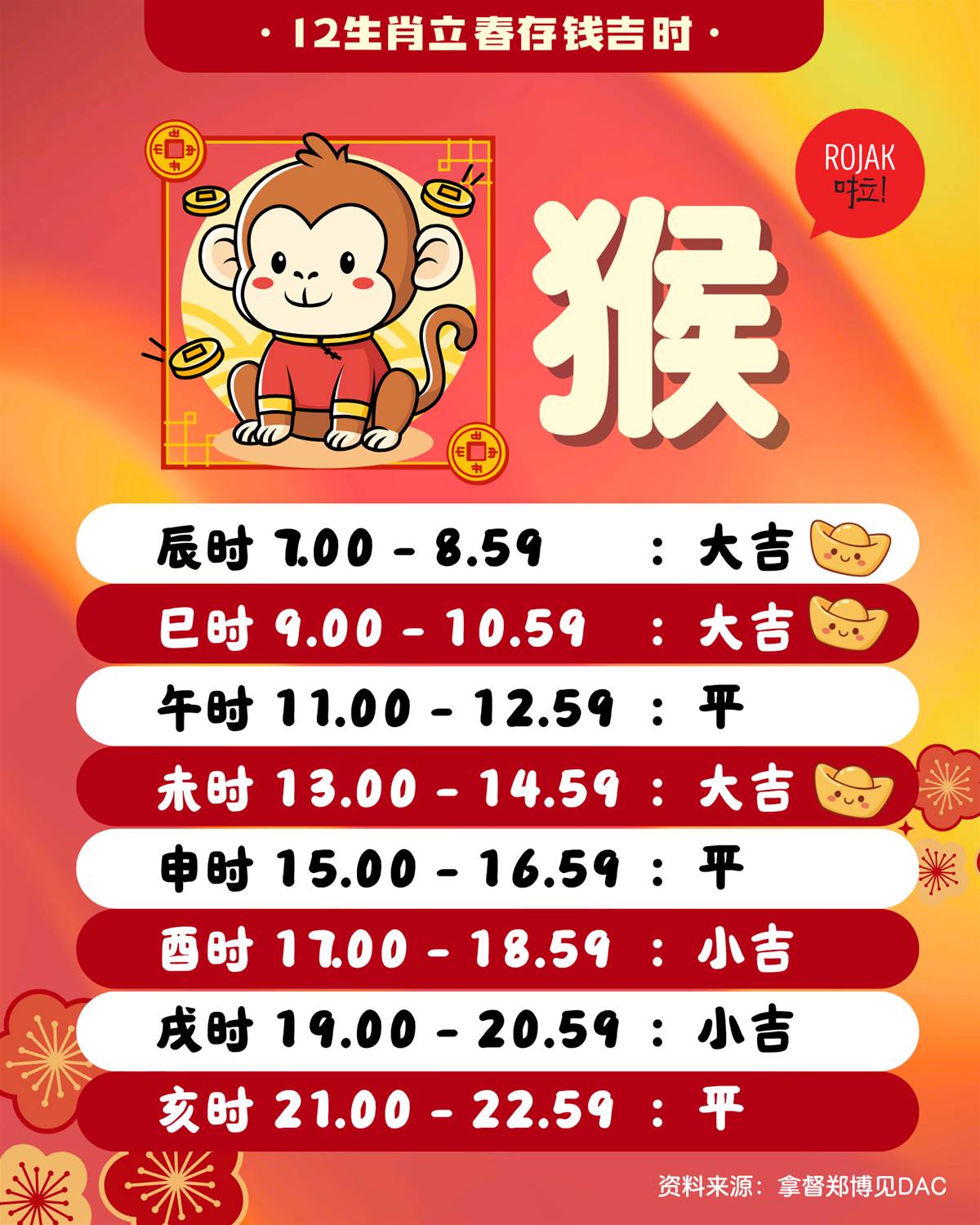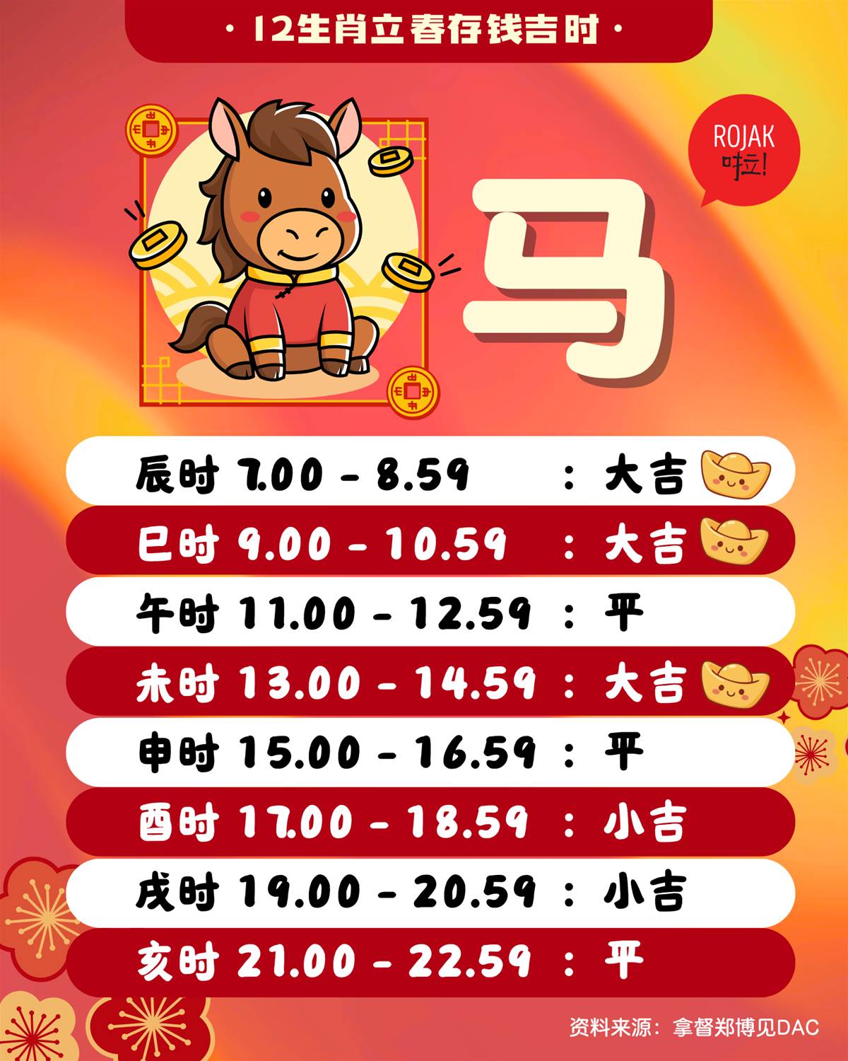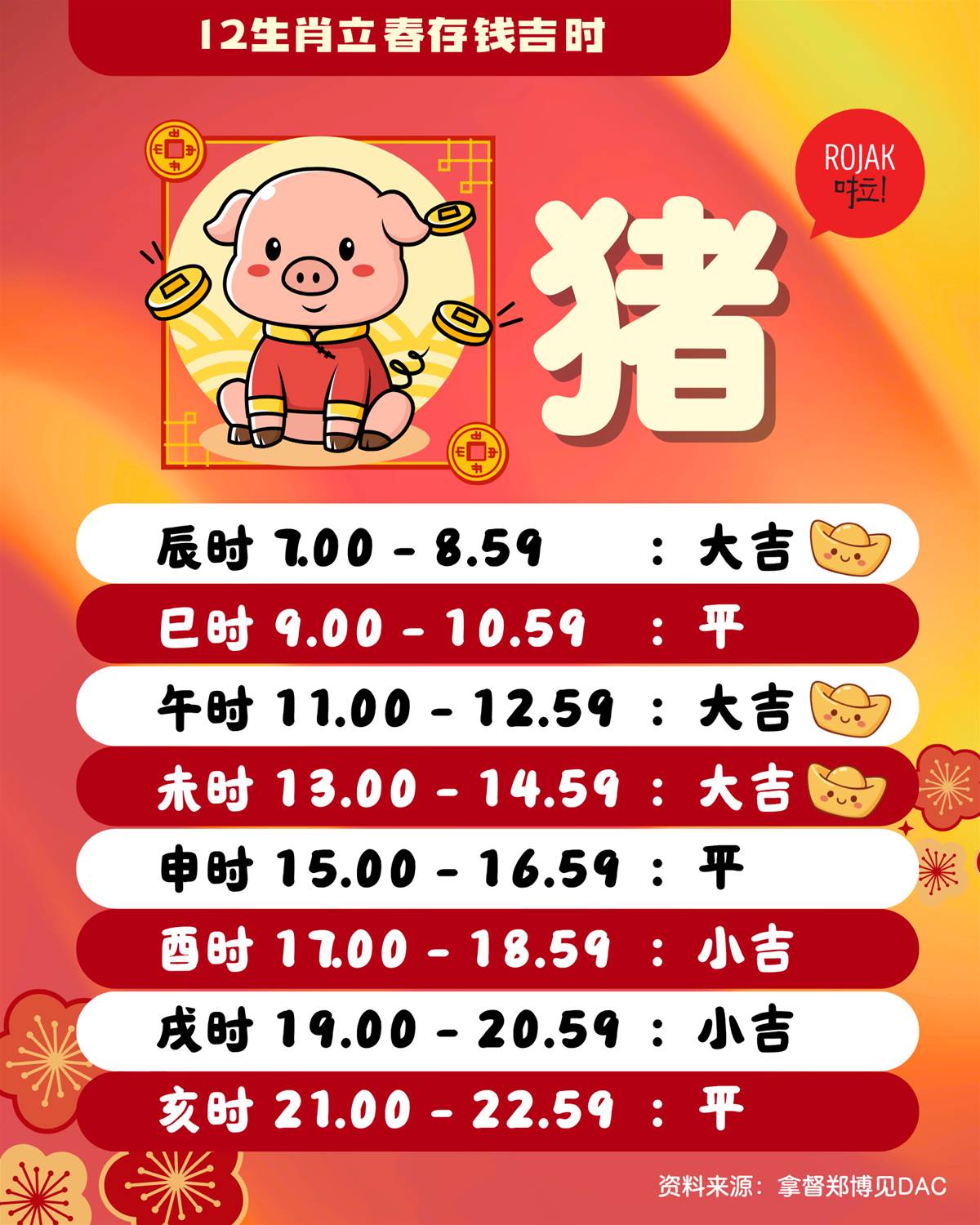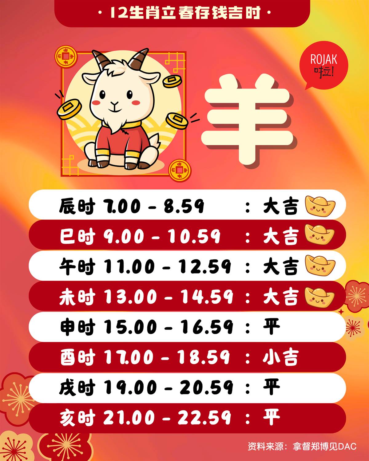 以下是拿督郑博见分享的 12 生肖立春存钱吉日: