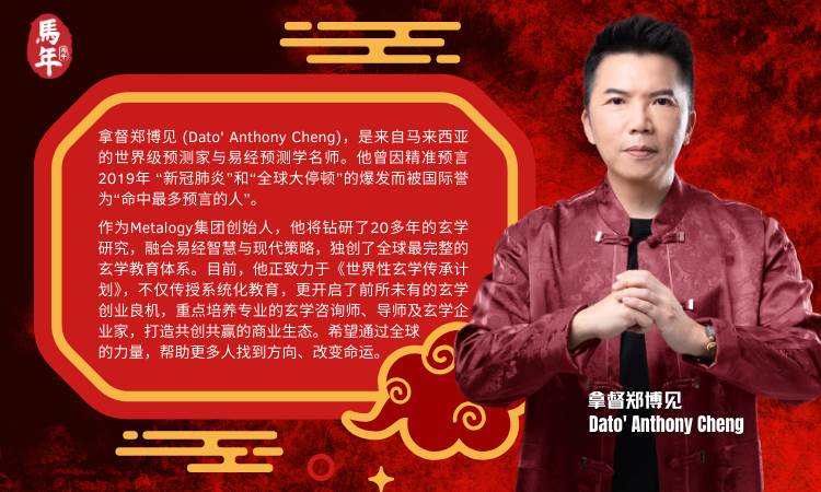 作为 Metalogy 集团创始人,他将钻研了 20 多年的玄学研究,融合易经智慧与现代策略,独创了全球最完整的玄学教育体系。目前,他正致力于《世界性玄学传承计划》,不仅传授系统化教育,更开启了前所未有的玄学创业良机,重点培养专业的玄学咨询师、导师及玄学企业家,打造共创共赢的商业生态。希望通过全球的力量,帮助更多人找到方向、改变命运